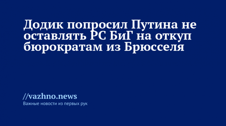 «Я только попросил, чтобы президент Путин не упустил шанс на том уровне, о котором я вам упоминал чтобы нас не оставили в ведении второстепенных бюрократов из Брюсселя», — заявил Додик.