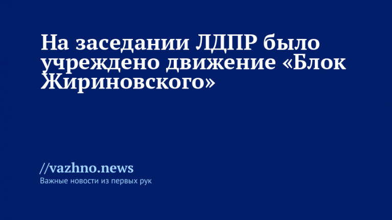 На состоявшемся учредительном собрании ЛДПР было единогласно утверждено создание общероссийского общественного движения под названием «Блок Жириновского». Об этом 3 октября идет речь в Telegram-канале ЛДПР.