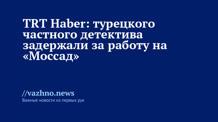 Турецкая национальная разведывательная служба арестовала жителя Стамбула по подозрению в связях с израильской спецслужбой «Моссад». Об этом 3 октября сообщил телеканал TRT Haber, ссылаясь на сведения спецслужб.