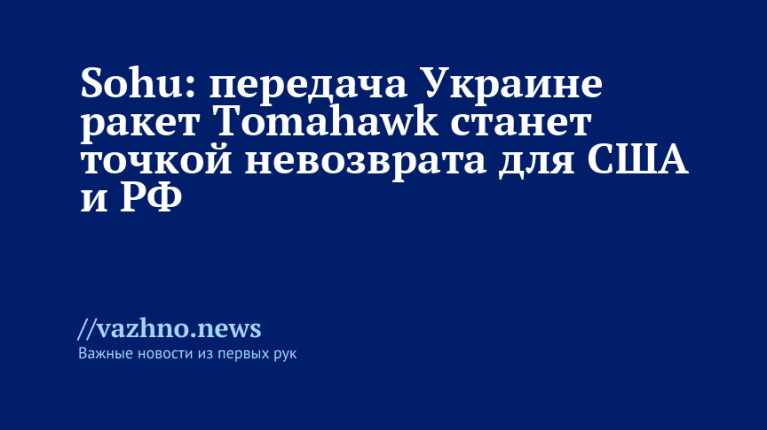 Обсуждаемая в Вашингтоне возможность передачи Украине американских ракет Tomahawk может стать точкой невозврата в отношениях между США и Россией. Об этом 3 октября заявил китайский портал Sohu.