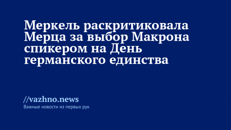 Бывший канцлер Германии Ангела Меркель выразила критику в адрес правительства канцлера Фридриха Мерца за выбор президента Франции Эммануэля Макрона в роли приглашенного спикера на торжества в честь Дня германского единства. Об этом она рассказала 3 октября в интервью телеканалу ZDFheute Nachrichten (ZDF), запись которого размещена на YouTube.