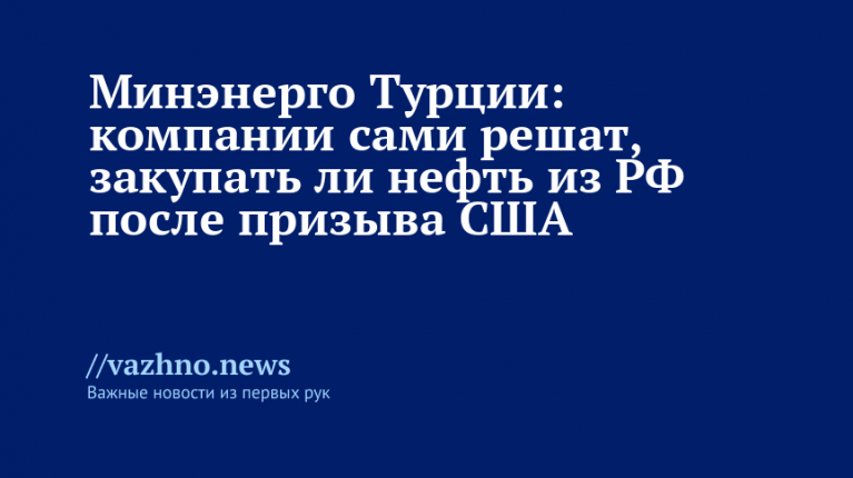 Решения относительно закупок российской нефти, учитывая требования США, будет принимать частный сектор Турции. Об этом 2 октября сообщил глава Министерства энергетики Турции Альпарслан Байрактар в интервью телеканалу CNN Turk.