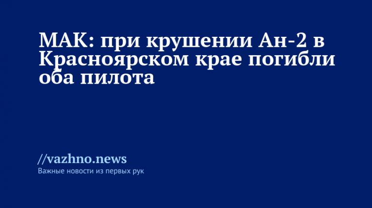 В Красноярском крае произошло падение легкомоторного самолета Ан-2, в результате которого погибли оба пилота. Об этом 3 октября опубликована информация на странице Межгосударственного авиационного комитета (МАК).