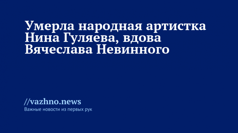 Скончалась народная артистка Нина Гуляева, вдова Вячеслава Невинного