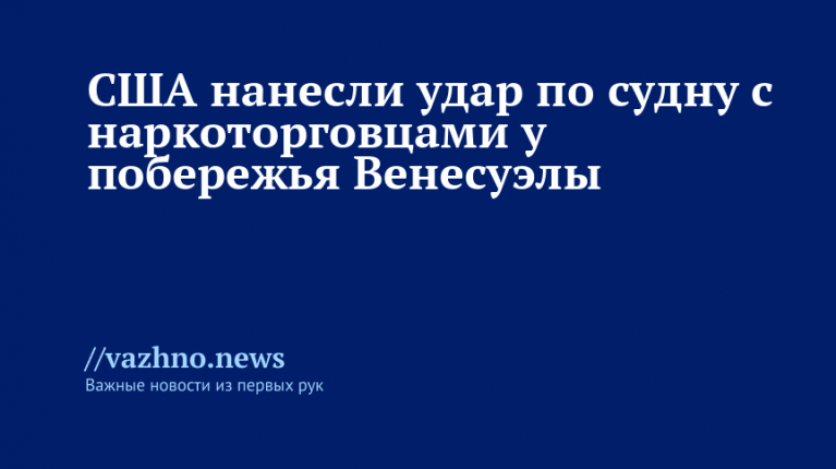 США атаковали судно с наркоторговцами у побережья Венесуэлы 20:13 Фото: TASS/ZUMA Press Wire США нанесли удар по наркосудну у берегов Венесуэлы в международных водах США