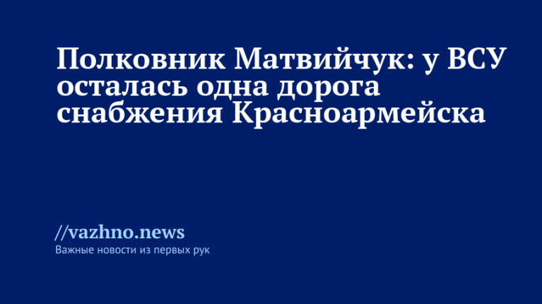 Эксперт отметил, что российские войска практически взяли в кольцо Красноармейск, и сейчас осталось только одно шоссе с грунтовым покрытием, по которому осуществляется снабжение Вооруженных сил Украины (ВСУ).