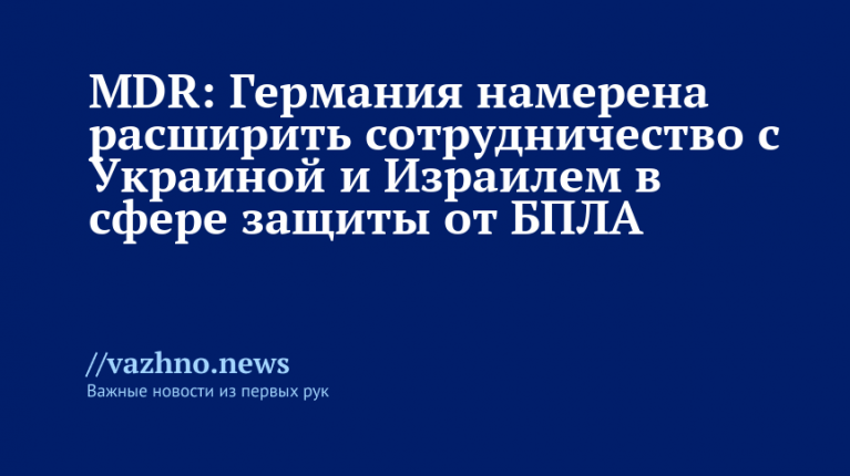 «Германия расширит сотрудничество с Украиной и Израилем в области защиты от беспилотников», — говорится в сообщении, переданном от имени Добриндта.