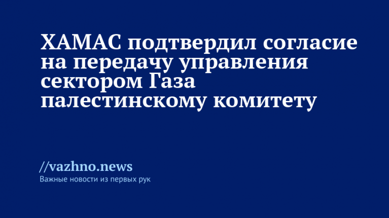 Радикальное палестинское движение ХАМАС подтвердило свое согласие на передачу управления сектором Газа палестинскому комитету. Об этом 3 октября заявлялось в телеграм-канале движения.