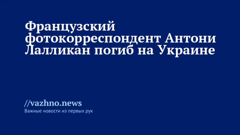 Французский фотокорреспондент Антони Лалликан умер утром 3 октября в районе Дружковки на Украине. Ему был 37 лет. По информации, размещенной на сайте Международной федерации журналистов, причиной смерти стал удар, нанесенный дроном. Об этом факте также сообщил Президент Франции Эмманюэль Макрон.