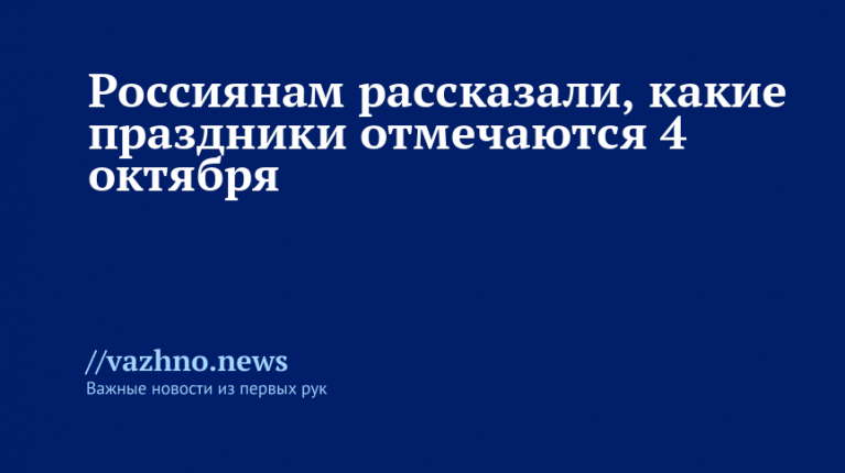 В субботу, 4 октября, отмечается несколько значимых праздников. На этот день приходится Всемирный день животных, День гражданской обороны России и День космических войск страны. Православная церковь вспоминает апостола от 70-ти Кондрата, а также священномучеников Ипатия и Андрея. В народном календаре эта дата известна как Ипат да Кондрат. «Известия» рассказывают об исторических и современных событиях 4 октября и публикуют гороскоп на этот день.