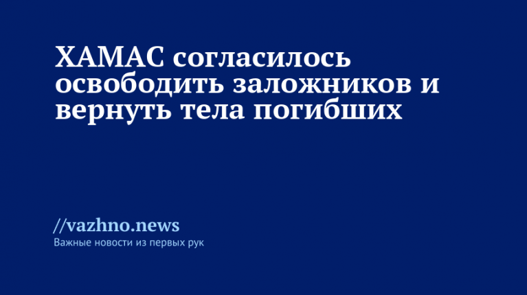 «ХАМАС согласен освободить всех живых заложников и вернуть останки погибших согласно формуле, предложенной президентом США, при условии создания подходящей среды для проведения обмена», — говорится в заявлении.