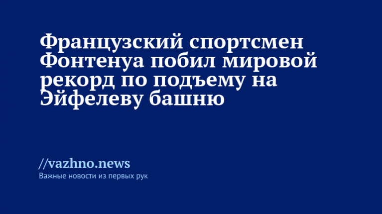 Французский спортсмен Орельен Фонтенуа установил новый мировой рекорд по подъему на Эйфелеву башню, преодолев ступени на велосипеде. Информация об этом появилась 3 октября в сообщении на официальном аккаунте башни в социальной сети Facebook (принадлежит компании Meta, деятельность которой в РФ признана экстремистской и запрещена).