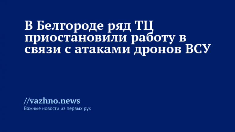 В Белгороде временно закрыты некоторые торговые центры (ТЦ) из-за ударов беспилотников, нанесенных Вооруженными силами Украины (ВСУ). Об этом 4 октября сообщил губернатор региона Вячеслав Гладков.