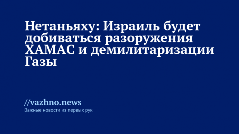 Израиль планирует добиться полного разоружения радикальной палестинской организации ХАМАС и демилитаризации сектора Газа после освобождения всех заложников. Об этом 4 октября сообщил израильский премьер-министр Биньямин Нетаньяху в своем видеообращении.