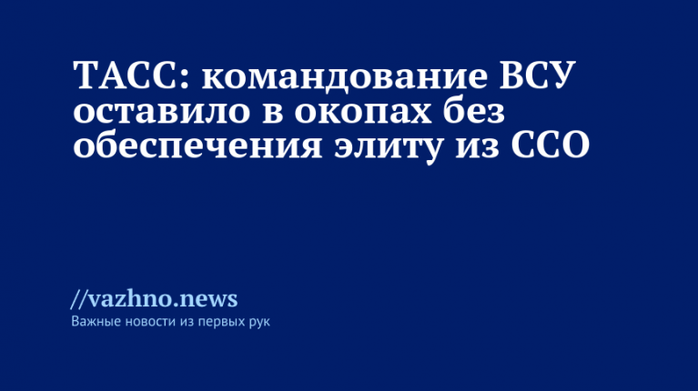 «Из-за нехватки личного состава на позициях и многочисленных случаев самовольного оставления частей СЗЧ, руководство ВСУ вынуждено направлять элитные подразделения ССО в окопы, при этом не обеспечивая их средствами, необходимыми для удержания позиций», — приводит слова силовых источников агентство ТАСС.