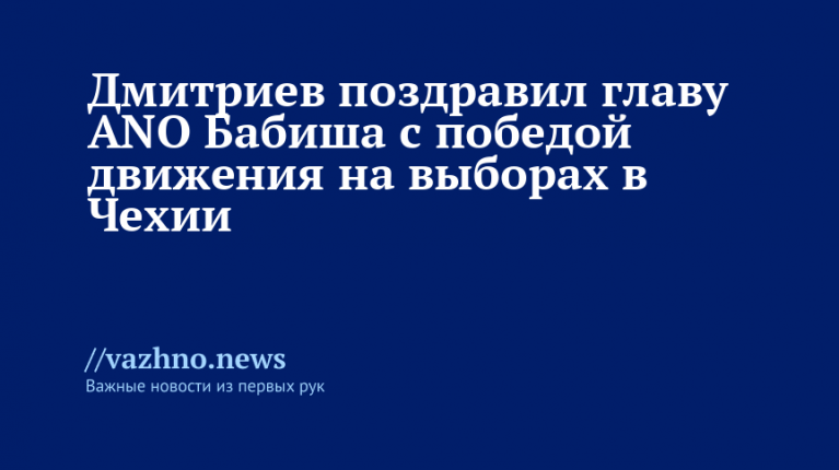 Глава Российского фонда прямых инвестиций (РФПИ) Кирилл Дмитриев выразил поздравления лидеру движения ANO («Акция недовольных граждан») Андрею Бабишу с победой их объединения на парламентских выборах в Чехии. Об этом он написал 5 октября в социальной сети X.