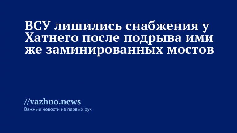ВСУ потеряли снабжение у Хатнего из-за взрыва собственных заминированных мостов