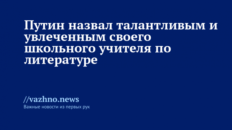 Президент России Владимир Путин поделился воспоминаниями о своем учителе литературы в школе, подчеркнув его увлеченность предметом и выдающиеся способности. Российский лидер рассказал об этом в интервью журналисту ВГТРК Павлу Зарубину.