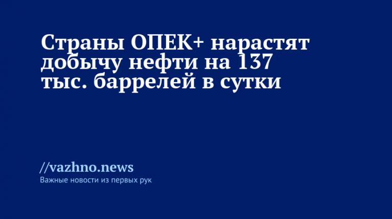 «В связи с устойчивыми перспективами мировой экономики и положительными фундаментальными показателями рынка, которые отражаются в низком уровне запасов нефти, восемь стран-членов приняли решение увеличить добычу на 137 тысяч баррелей в сутки», — говорится в публикации.