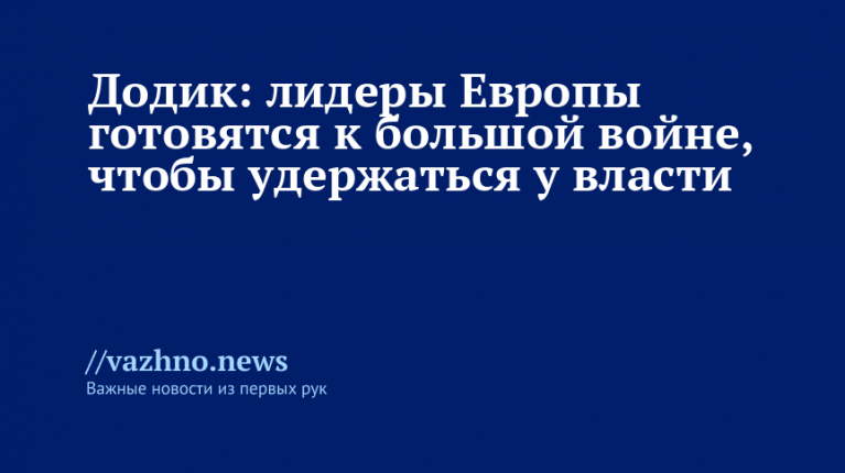 Многие европейские политики считают необходимой подготовку жителей Европы «к большой войне» для сохранения своей власти. Об этом 5 октября заявил Милорад Додик, президент Республики Сербской (РС), одного из энтитетов в составе Боснии и Герцеговины.