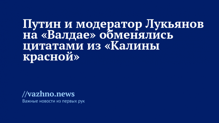 Президент России Владимир Путин и ведущий пленарной сессии дискуссионного клуба «Валдай» Федор Лукьянов перед началом выступления главы государства в шутливой форме обменялись цитатами из знаменитого фильма Василия Шукшина «Калина красная». Этот фрагмент их беседы был продемонстрирован 5 октября в эфире программы на телеканале «Россия 1».