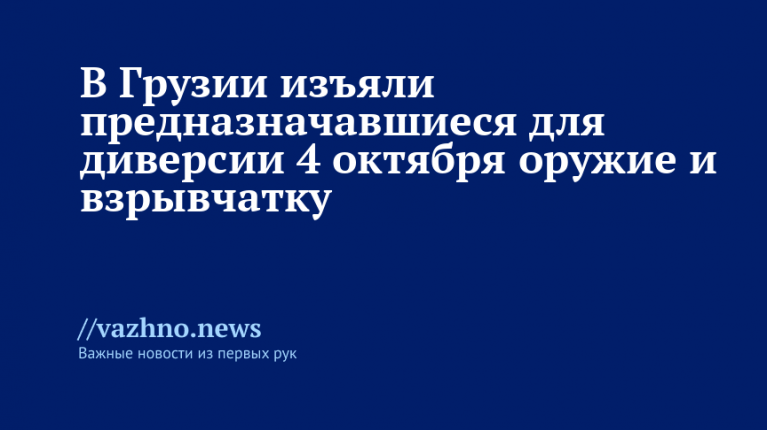 В Грузии задержали значительное количество оружия и взрывчатых веществ, которые готовились для диверсии, запланированной на 4 октября. Об этом 5 октября сообщил Telegram-канал «Sputnik Грузия», ссылаясь на данные службы госбезопасности страны.