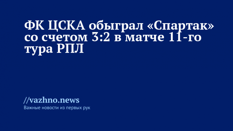 Московский футбольный клуб ЦСКА в поединке 11-го тура Российской премьер-лиги (РПЛ) одержал победу над «Спартаком» со счетом 3:2, возглавив таким образом турнирную таблицу. Матч состоялся 5 октября на «ВЭБ Арене» в Москве.