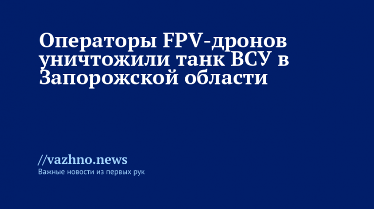 Операторы FPV-дронов уничтожили танк ВСУ в Запорожской области
