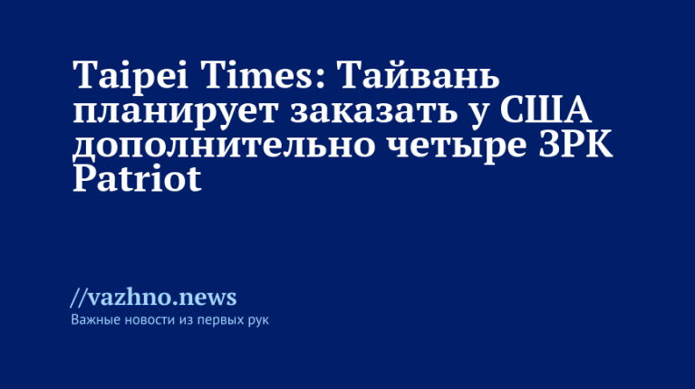 Тайвань намерен приобрести у США дополнительные четыре зенитных ракетных комплекса Patriot PAC-3 MSE и до 500 ракет к ним. Об этом 6 октября сообщила газета Taipei Times с ссылкой на информированные источники.