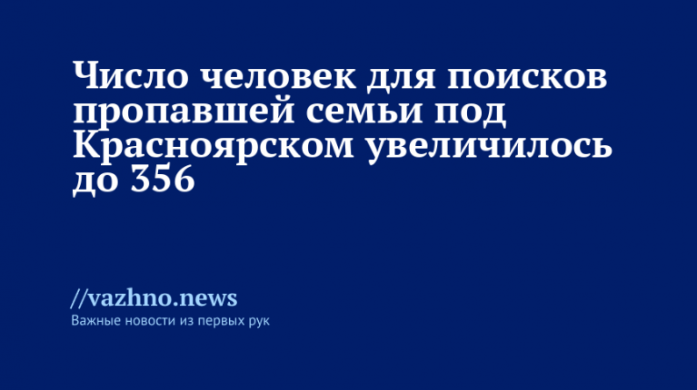 Количество участников поисков пропавшей семьи в Красноярском крае возросло до 356 человек. Об этом 6 октября проинформировало Главное управление (ГУ) МЧС России по данному региону.