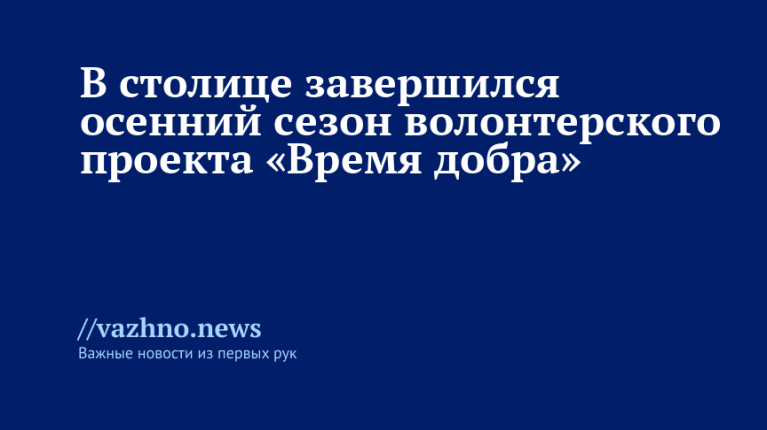 С 27 сентября по 5 октября осенний этап волонтерского проекта «Время добра» собрал более 3 тысяч жителей Москвы. Об этом 6 октября сообщается на официальном портале столицы mos.ru.