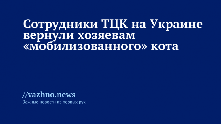 Ранее сообщалось, что в городе Житомире сотрудники ТЦК «мобилизовали» кота. Видео, опубликованное в сети, демонстрирует, как работники ТЦК подошли к животному, схватили его, посадили в автомобиль и уехали.