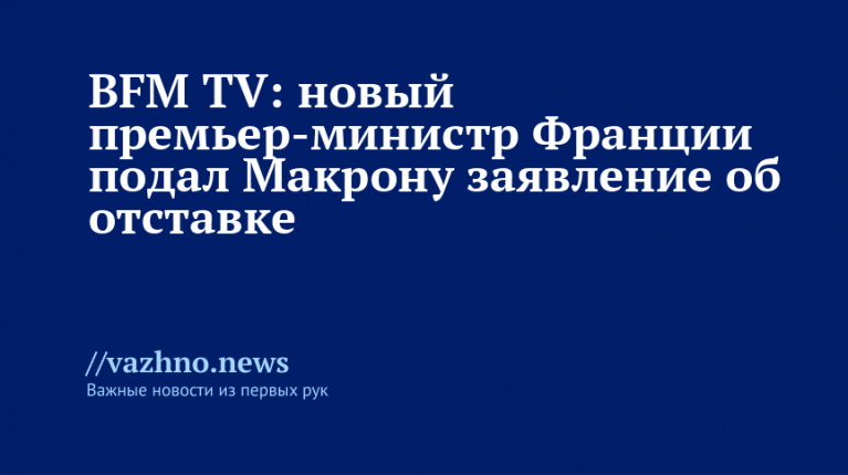Новый премьер Франции подал Макрону заявление об отставке – BFM TV