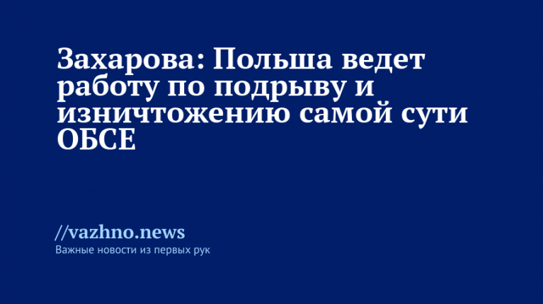 «Официальная Варшава на протяжении длительного периода ведет деструктивную работу с целью подрыва и разрушения самой сущности ОБСЕ», — рассказала она ТАСС.