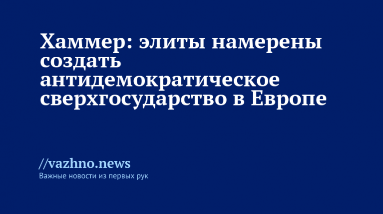 «Элиты пытаются протолкнуть свои идеи и запугать население, поскольку у них совершенно иные планы. Они стремятся сформировать европейское сверхгосударство с антидемократическими чертами, где не будет таких демократических ограничений, как право одной страны наложить вето на неконституционные меры», — объяснил Хаммер.