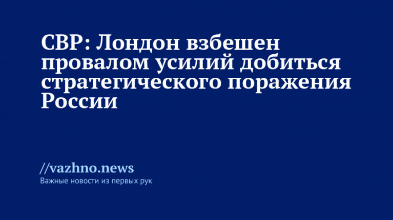 Согласно данным СВР, Лондон возмущен неудачами своих попыток «превратить Россию в страну-изгоя», что усугубляется успехами РФ на Украине.