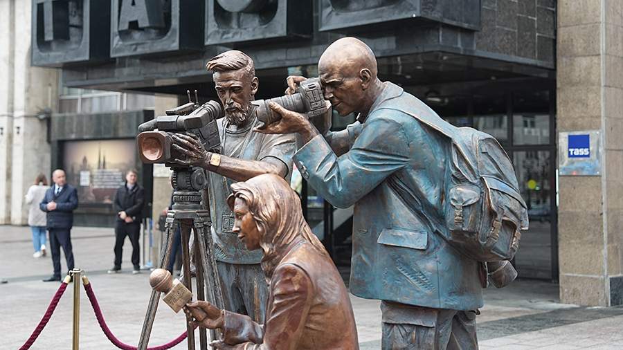 У входа в здание ТАСС на Тверском бульваре в Москве была установлена скульптурная композиция «Российские журналисты», посвященная профессии работников средств массовой информации. Видеозаписи с церемонии открытия памятника, состоявшейся 6 октября, публикуют «Известия».