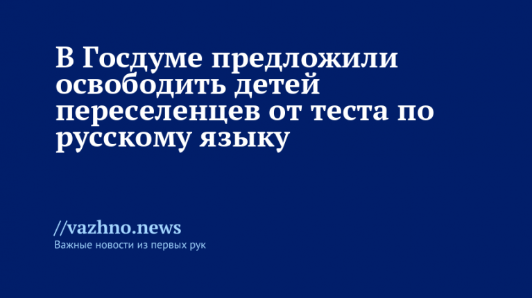 Первый заместитель председателя комитета Госдумы по вопросам Содружества независимых государств (СНГ) Константин Затулин представил на рассмотрение парламента законопроект, который предлагает освободить детей, участвующих в программе переселения соотечественников, от обязательного теста на знание русского языка при поступлении в школу. Документ был опубликован 6 октября в электронной базе Госдумы.