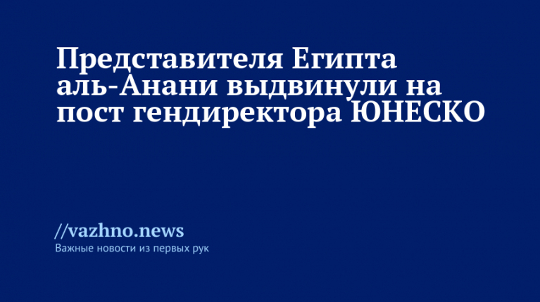 «По результатам голосования члены исполнительного совета ЮНЕСКО выдвинули Халеда аль-Анани (Египет) на должность генерального директора организации», — говорится в коммюнике.