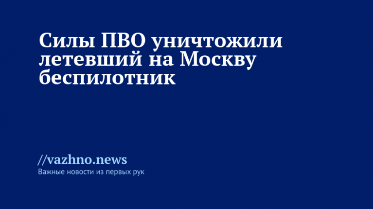 В сообщении в мессенджере MAX говорится: «ПВО Минобороны сбили беспилотник, летевший на Москву».