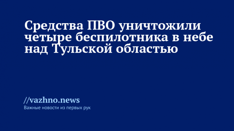 «Прошлой ночью подразделения противовоздушной обороны Минобороны РФ уничтожили четыре украинских БПЛА над Тульской областью», — отметил он в своем Telegram-канале.
