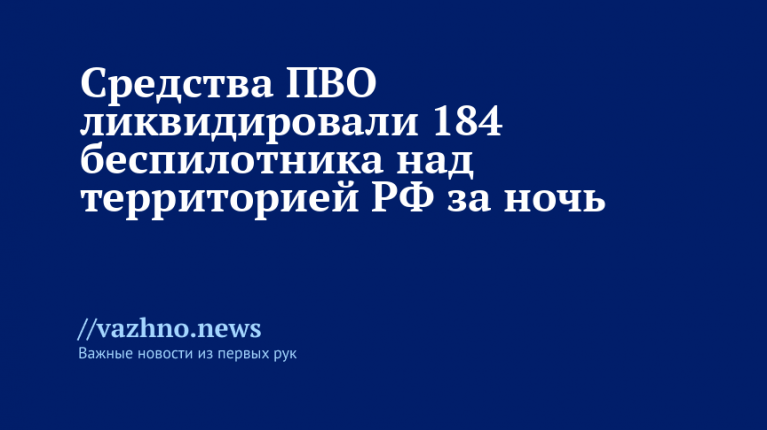 За прошедшую ночь средства противовоздушной обороны (ПВО) России сбили 184 беспилотных летательных аппарата (БПЛА) Вооруженных сил Украины (ВСУ) над территорией страны, сообщили в Минобороны РФ 7 октября.
