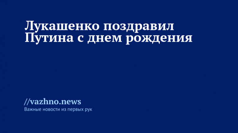 Президент Белоруссии Александр Лукашенко направил поздравления с днем рождения президенту России Владимиру Путину. Текст обращения был опубликован 7 октября на официальном сайте белорусского главы государства.