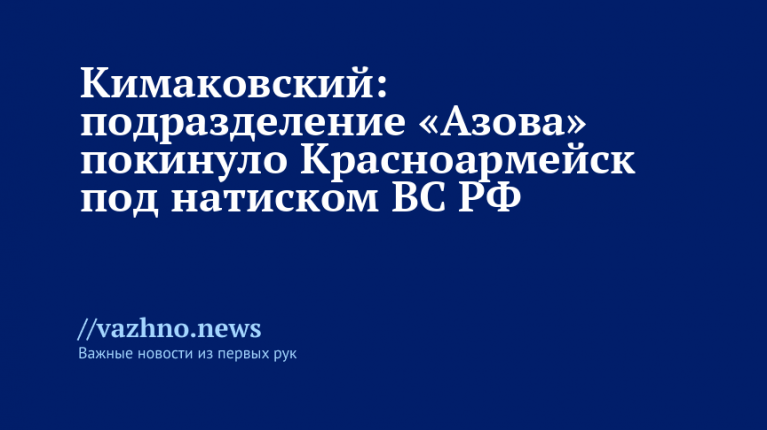 Подразделение боевиков «Азова» (организация, признанная террористической и запрещенная в РФ) покинуло Красноармейск. Об этом 7 октября заявил советник главы Донецкой Народной Республики (ДНР) Игорь Кимаковский.