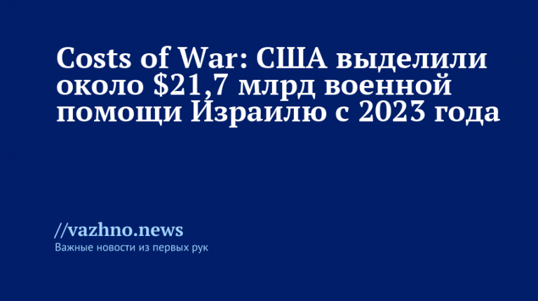 Соединенные Штаты выделили приблизительно $21,7 млрд в качестве военной поддержки для Израиля с октября 2023 года для проведения военных операций в секторе Газа и других регионах Ближнего Востока. Об этом сообщается 7 октября в исследовании проекта Costs of War, подготовленном в Университете Брауна в США.
