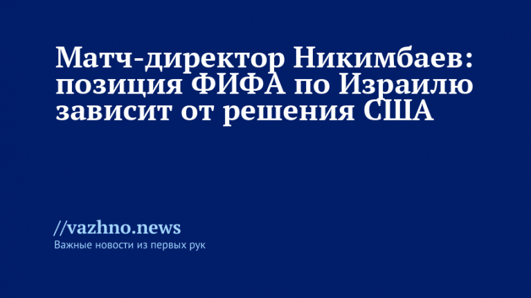 Никимбаев подчеркнул, что США являются единственным союзником, остающимся у Израиля. Он также выразил недовольство тем, что политика вмешивается в футбол, добавив, что президент ФИФА Джанни Инфантино старается поддерживать хорошие отношения с президентом США Дональдом Трампом, что оказывает влияние на решения организации.