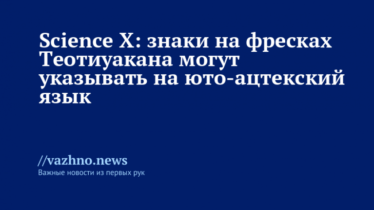 Ученые из Университета Копенгагена заявили, что надписи на фресках древнего мексиканского города Теотиуакан могут быть ранней формой языка, из которого позднее развилась семья юто-ацтекских диалектов. Об этом пишет журнал Science X.
