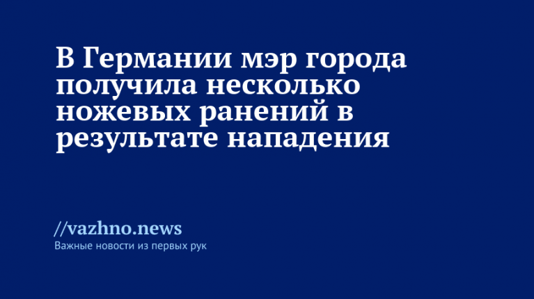 Мэру города Хердеке в земле Северный Рейн-Вестфалия, Германии, Ирис Штальцер нанесли несколько ножевых ударов неизвестные злоумышленники. Об этом 7 октября сообщает издание Focus.