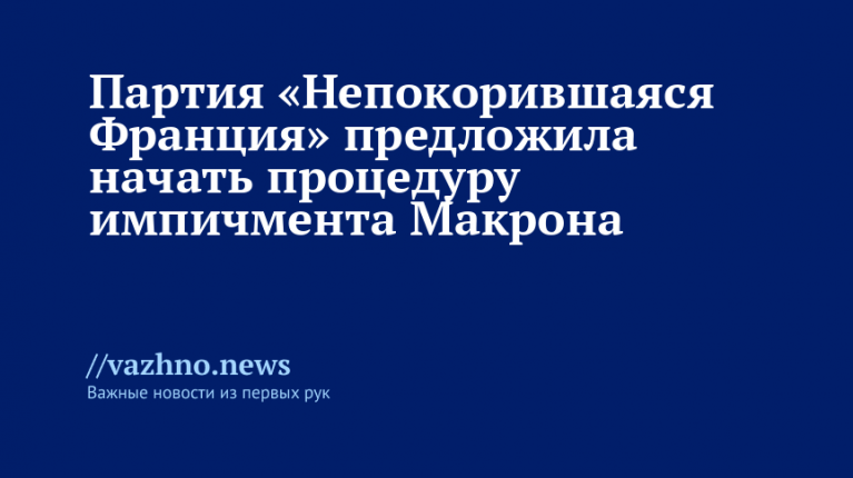 Ранее, 12 сентября, лидер «Непокоренной Франции» Матильда Пано сообщила, что проект импичмента Макрону поддержали 104 депутата ссылкой. В тот же день официальный представитель МИД России Мария Захарова отметила, что во Франции случился глубокий политический кризис. Она добавила, что большинство населения страны уже давно утратило доверие к правлению Макрона.