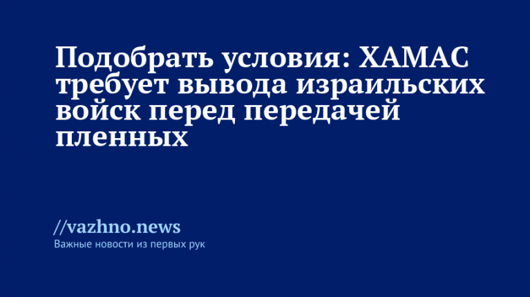 Движение ХАМАС связывает освобождение заложников с прекращением огня и выводом израильских сил из сектора Газа. На первом раунде переговоров в Шарм-эш-Шейхе представители движения передали посредникам свои условия, отметив, что продолжающиеся воздушные удары по анклаву угрожают процессу обмена пленными. Среди главных требований — включение в списки обмена уважаемых сторонников ХАМАС, отбывающих долгие и пожизненные сроки в израильских тюрьмах, а также гарантии доставки гуманитарной помощи. Из-за разногласий между позициями ХАМАС и Израиля переговоры планируется продолжить в течение нескольких дней.